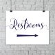 Directional restrooms sign with an arrow pointing to the right. Perfect for a navy or nautical theme wedding or event.
