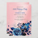 Honour a special woman with this elegant and feminine Birthday party invitation. This design features a watercolor navy blue rose flower with butterflies and gold glitter splash on a pink background. All texts are editable. Matching items available in store!