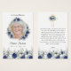 Navy Rose Floral Gold Photo Sympathy Prayer Cards.