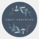NAVY ROSE GOLD BLUE FOLIAGE WREATH PROFESSIONAL CLASSIC ROUND STICKER