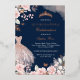 Navy Rose Gold Blush Dress Floral Quinceanera