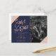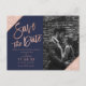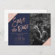 Rose Gold typography on customisable navy blue rose gold glitter colour block, and faux rose gold geometric stripes chic save the date wedding , perfect for elegant, stylish wedding,