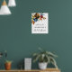This beautiful welcome sign features deep rust and navy blue flowers. Add your information using the template form. The Customise Further feature can be used to access the advanced editing menu where you can change the font, colours and layout of the text.