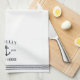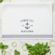 Customise your beach house kitchen with this cute personalised towel featuring your family name or house name and year established in navy blue lettering accented with a nautical anchor illustration.
