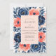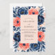 This design features a lush display of watercolor anemones and roses in a striking palette of navy blue and salmon pink. Hand-painted botanical elements and deep blue foliage create a sophisticated and romantic mood. A soft blush backdrop balances the vibrant floral blooms and artistic brushstrokes.