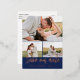 Navy Script 3 Photos Wedding Save Our Date Foil Invitation Postcard