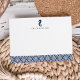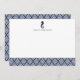 Use these preppy chic flat cards for all your correspondence! Summery personalized design features a tiny seahorse illustration and your name or monogram in classic nautical navy blue, with a patterned bottom border in matching navy.