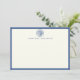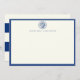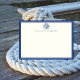 Navy seashell flat correspondence note card. A navy blue and ivory white nautical themed seashell flat note card suitable for any correspondence wardrobe. The card can be personalised with the inclusion of a name. The back of the card is in a modern, elegant and stylish striped ivory white and navy.