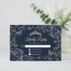 Navy silver floral Quinceanera RSVP reply card. Features, script font, silver butterflies, watercolor roses and tiara. Perfect for an elegant princess style glam celebration. Personalize with your own details.