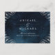 Glam silver colour handwriting flourish calligraphy corners on moody navy blue night sky background, elegant and sophisticated, great wedding insert cards for vintage wedding, winter weddings and evening wedding.