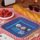 Navy blue and sky blue with white 30th Three OH! photo thirtieth birthday party napkin. Fun graphic 30th birthday party napkin for you to customise with your own birthday boy's name, dates, and four photos one from each decade! Great to add some fun to special milestone birthday parties. Other matching items and colour options are available. Unique design by www.mylittleeden.com