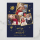 Navy Snowflake Foil 3 Photo Engagement Christmas Foil Holiday Postcard