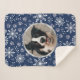 Navy Snowflake Paw Pattern Pet Photo Sherpa Blanket