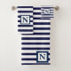 Monogrammed Modern Navy Blue White stripes Bathroom towel set design. Personalise with your name or initials.