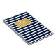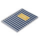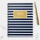 Trendy, modern stripes pattern in navy blue and white with a gold custom name template.