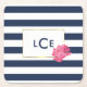Navy Stripe & Pink Peony Monogram Coasters