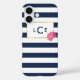 Navy Stripe & Pink Peony Monogram iPhone Case