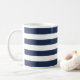 This mug features a bold navy blue and white stripe background, faux gold border, and a pretty pink peony in soft watercolors. Coordinates with our Navy Stripe & Pink Peony office accessories, paper products, and accessories. Customise with a name, monogram, or text of your choice!