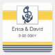 navy blue and white stripes with yellow border and white dotted border featuring an anchor, Mod nautical wedding favour stickers and envelope stickers. Matching products also available.