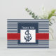 navy stripes, anchor, nautical wedding Thank you Card