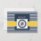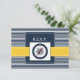 navy blue and white stripes with yellow border and white dotted border featuring an compass, Mod nautical wedding rsvp. Matching products also available.