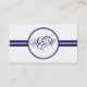 Customised Business Card Template: Professional Frame Motif/Navy Striped Pattern/Graceful Script Monogram Accent