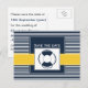 navy blue and white stripes with yellow border and white dotted border featuring an life ring, Mod nautical wedding save the date. Matching products also available.