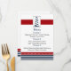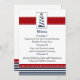 navy blue and white stripes with red border and white dotted border featuring an lighthouse, Mod nautical wedding menu cards. Matching products also available.