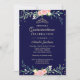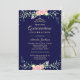 Navy Sweet Floral Sparkle Confetti Quinceanera Invitation