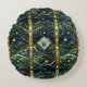 Navy Teal and Gold Moonlight Forest with Monogram Round Cushion