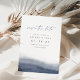 Elegant coastal wedding save the date features a sheer navy blue watercolor gradient along the bottom with a graceful curve that evokes the ebb and flow of the sea. Your wedding details appear in minimalist classic lettering with handwritten script accents. Use the back for sharing additional information with your guests.