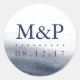 Seal your invitation envelopes, favours and more with our coastal chic monogrammed stickers. Round design features your initials and wedding date in elegant navy blue lettering with a sheer navy blue watercolor wash background that evokes the ebb and flow of the ocean. Coordinates with our Navy Tides wedding invitation collection.