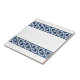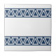 White ceramic tile with small, navy triangle border on top and bottom. Perfect for a kitchen or bathroom.
