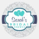Navy, Turquoise, Grey Damask Bridal Shower Classic Round Sticker