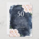 Navy Watercolor Blush Floral 50th Anniversary Invitation
