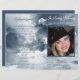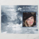 This design features navy watercolor clouds with a frame for a photo on the front and coordinating colour on the back with room for the service details and Obituary. ( This is meant to be folded in half )