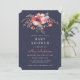 Navy Watercolor Floral Poppies Baby Shower Invite