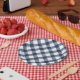 Navy blue plaid gingham design that's perfect for summer parties or a country themed baby shower.