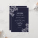 A Navy Wedding Elegant White Military Invitation designed with soft white accents on a dark navy background. The white text includes: The Bride and Groom's Parents Names, The Bride and Groom's Names, Wedding Date, Time, Location and Reception To Follow. The reverse is a matching dark navy background with the Bride and Groom's First Initials. To personalise, simply insert your details into our easy template, replacing the sample text.
