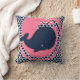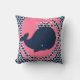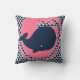 If you love whales you'll love this fun, colourful whale throw pillow featuring a navy blue whale on a pink and navy blue patterned background. This whale pillow is great for kids bedrooms, the nursery, playroom, or recreation room!
