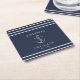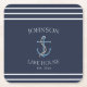 Navy White Anchor Stripe Lake House Name Square Paper Coaster
