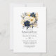 Navy, white, and gold floral wedding rehearsal dinner invitation. Ideal for a garden wedding.