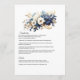 Navy blue, white and gold floral wedding menu customisable to your event specifics.