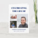 Clean and minimalist folded funeral program in navy blue and white, with elegant fonts. On the cover, three photos of your loved one along with their name and years living. Inside you can write the obituary and program. On the back you can add acknowledgements.