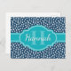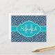 Navy White Dotted Pattern Teal Monogram Postcard