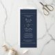 This minimal white script print on a dark navy blue background with a gold border is an elegant program for your wedding day. The back is white with the same dark navy script. Personalise all the information including ceremony details and attendants