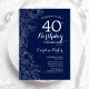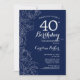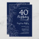 Navy White Floral 40th Birthday Party Invitation. Minimalist modern design featuring botanical outline drawings accents and typography script font. Simple trendy invite card perfect for a stylish female bday celebration. Can be customized to any age. Printed Zazzle invitations or instant download digital printable template.