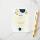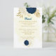 Romantic navy blue & white flowers with gold leaves botanical wedding details enclosure cards.
