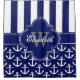 Navy Blue, White Nautical Anchor, Stripe with Initial Monogram on Navy Blue Quatrefoil with Ribbon