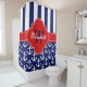Navy White LG Anchor Stripe 1ICBR Red Monogram Shower Curtain